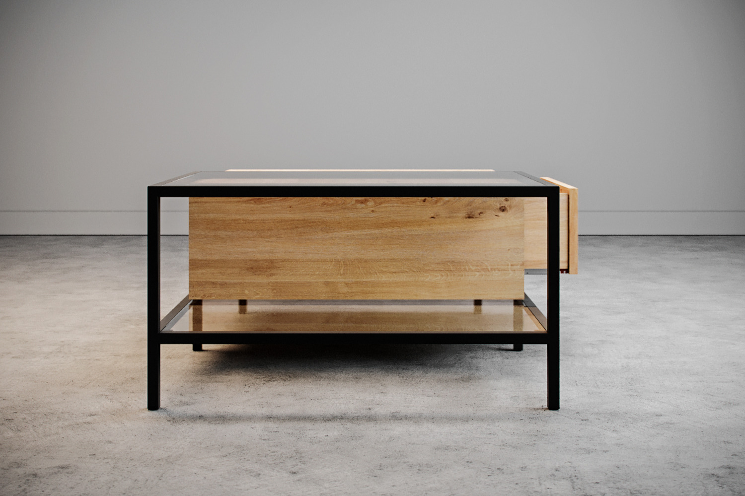 Połączenie stali drewna i szkła daje wiele możliwości aranżacyjnych. Dlatego wybierając ten mebel, ozdobisz swoje wnętrze w niebanalny sposób.